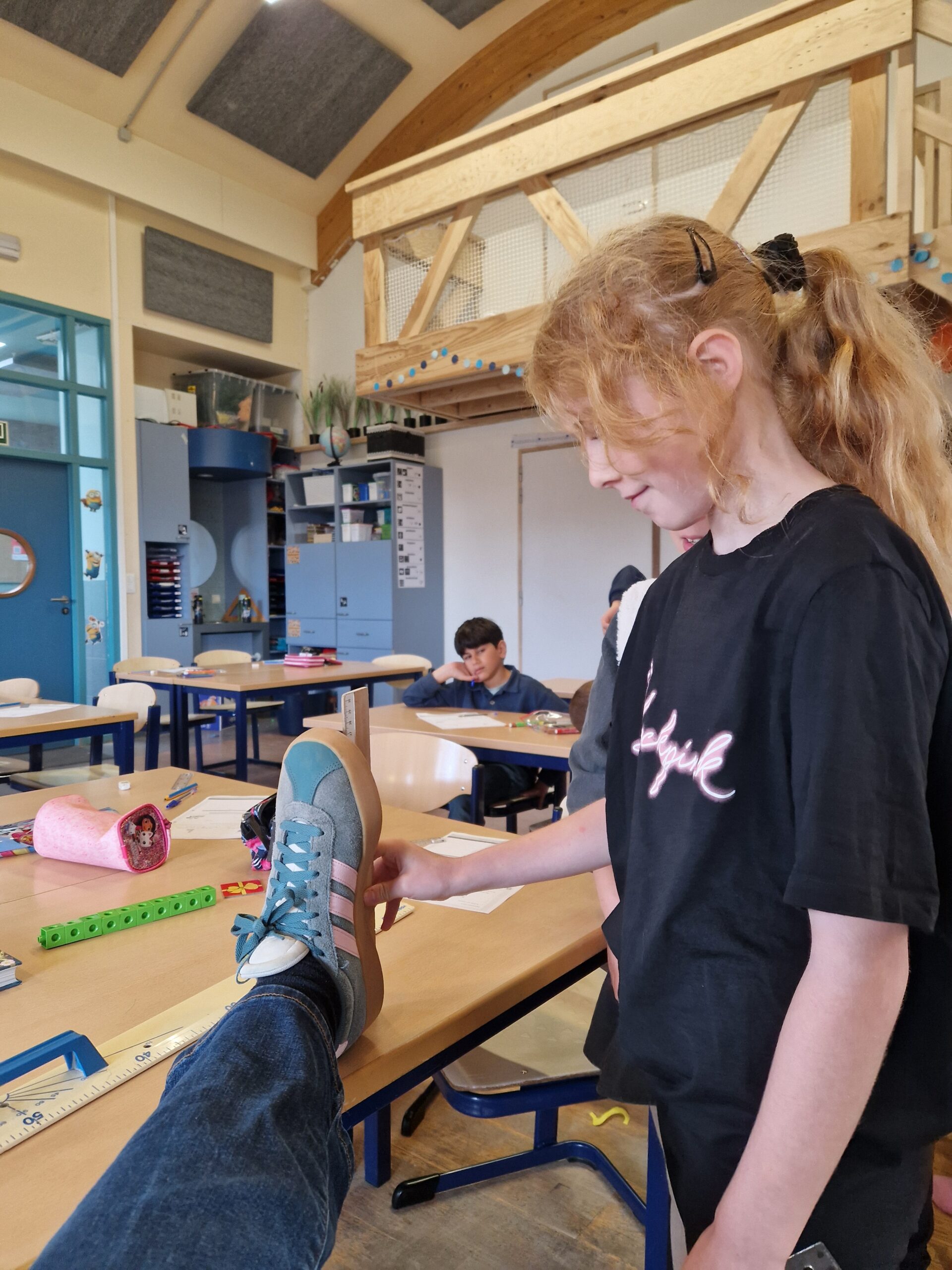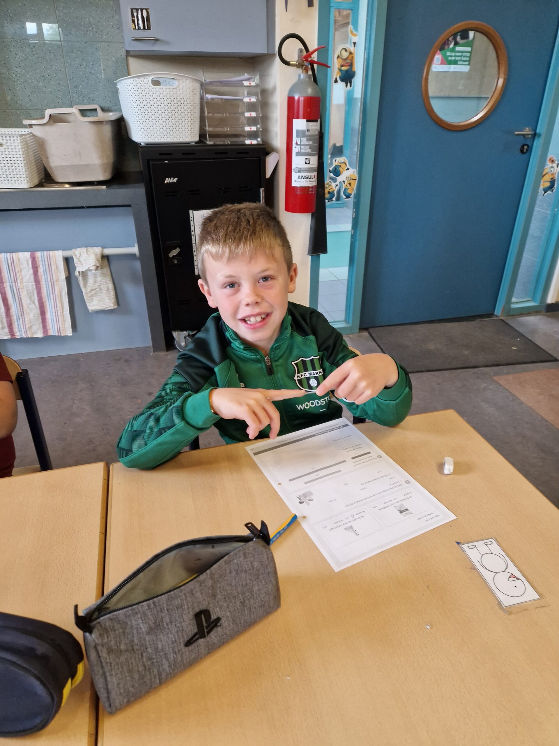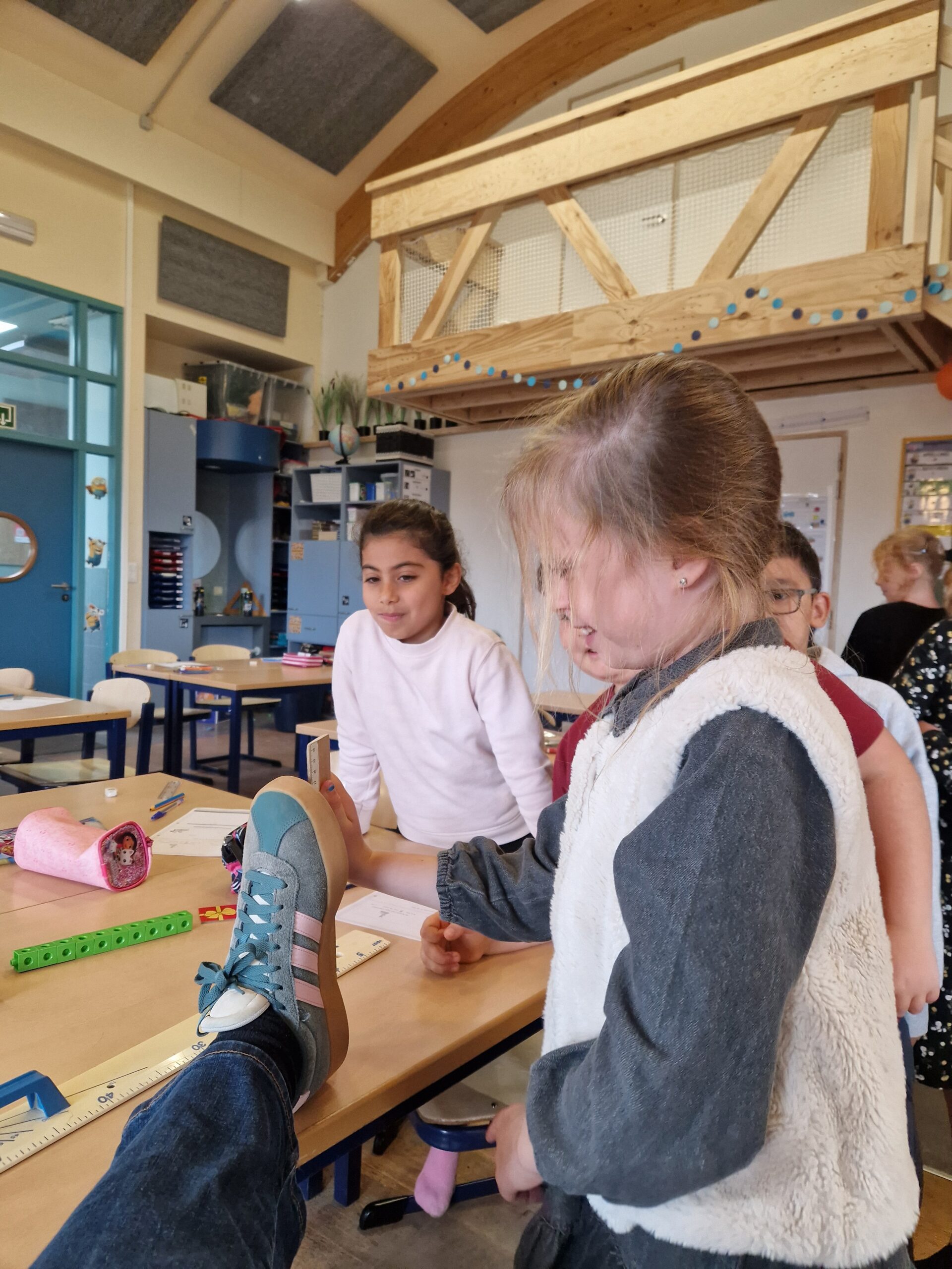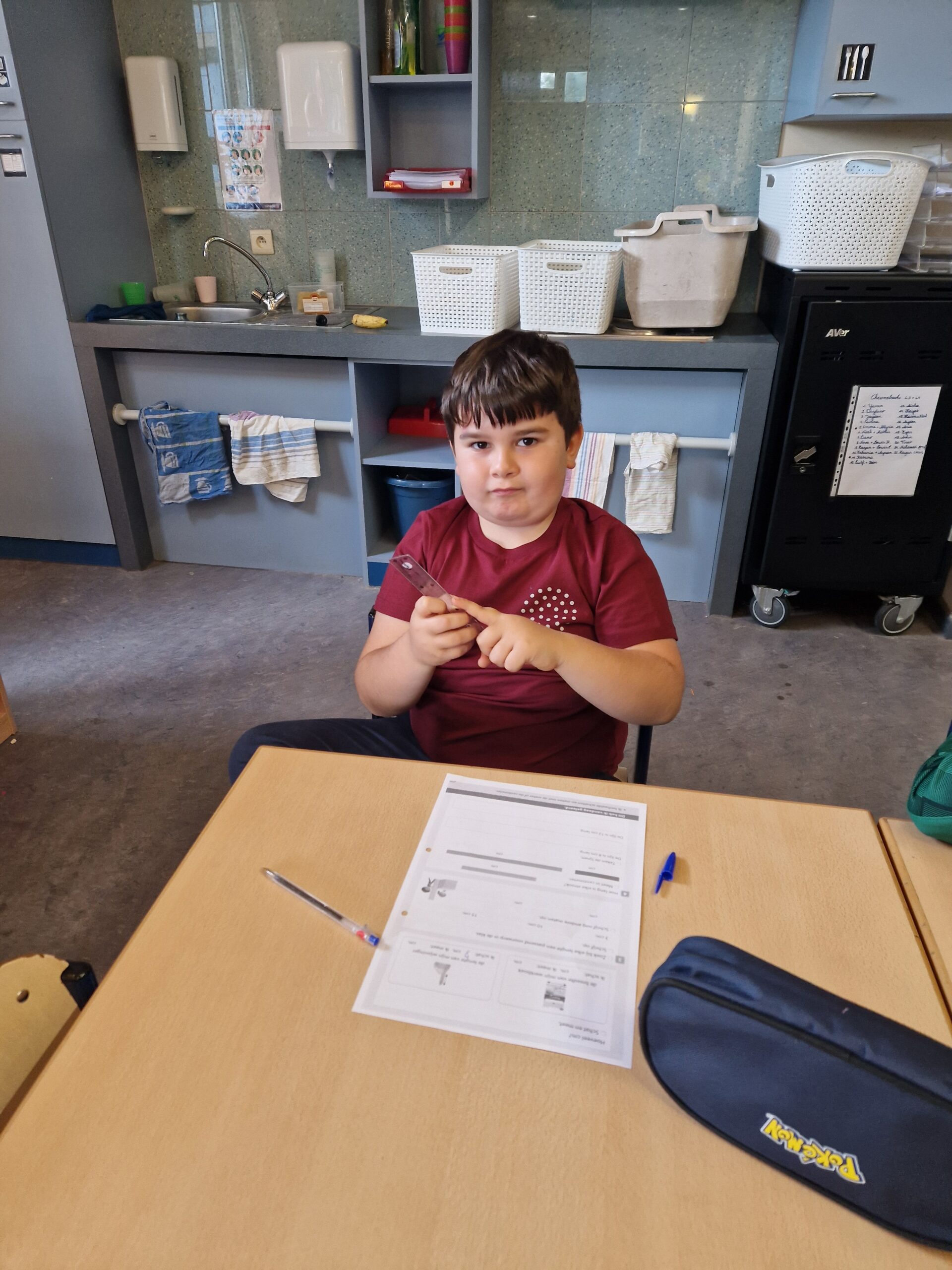 Tijdens de rekenlessen hebben we deze week het meten herhaald. Zowel de meter en de centimeter kwamen aanbod. Daarnaast maakten we ook verschillende rekenverhalen.