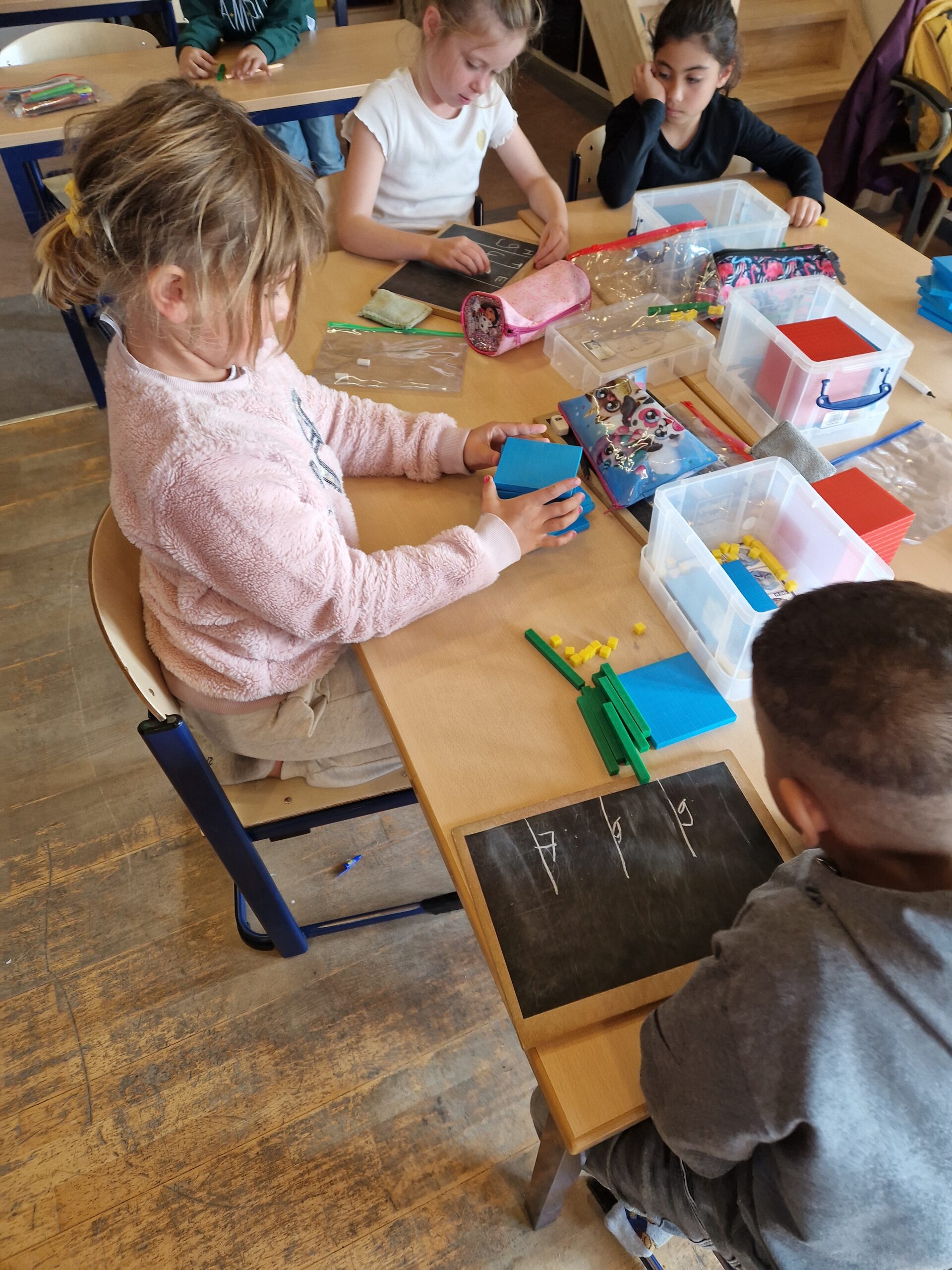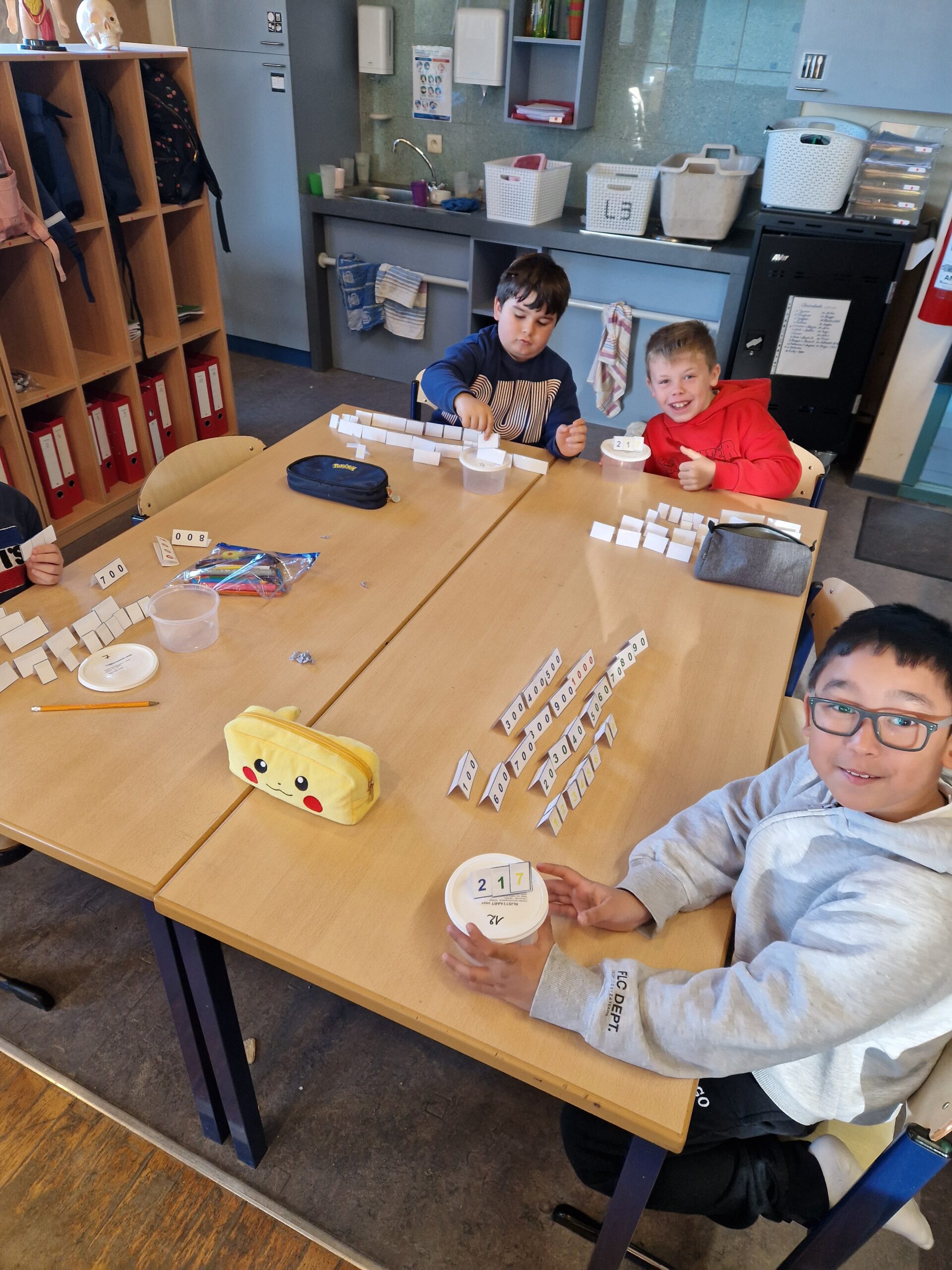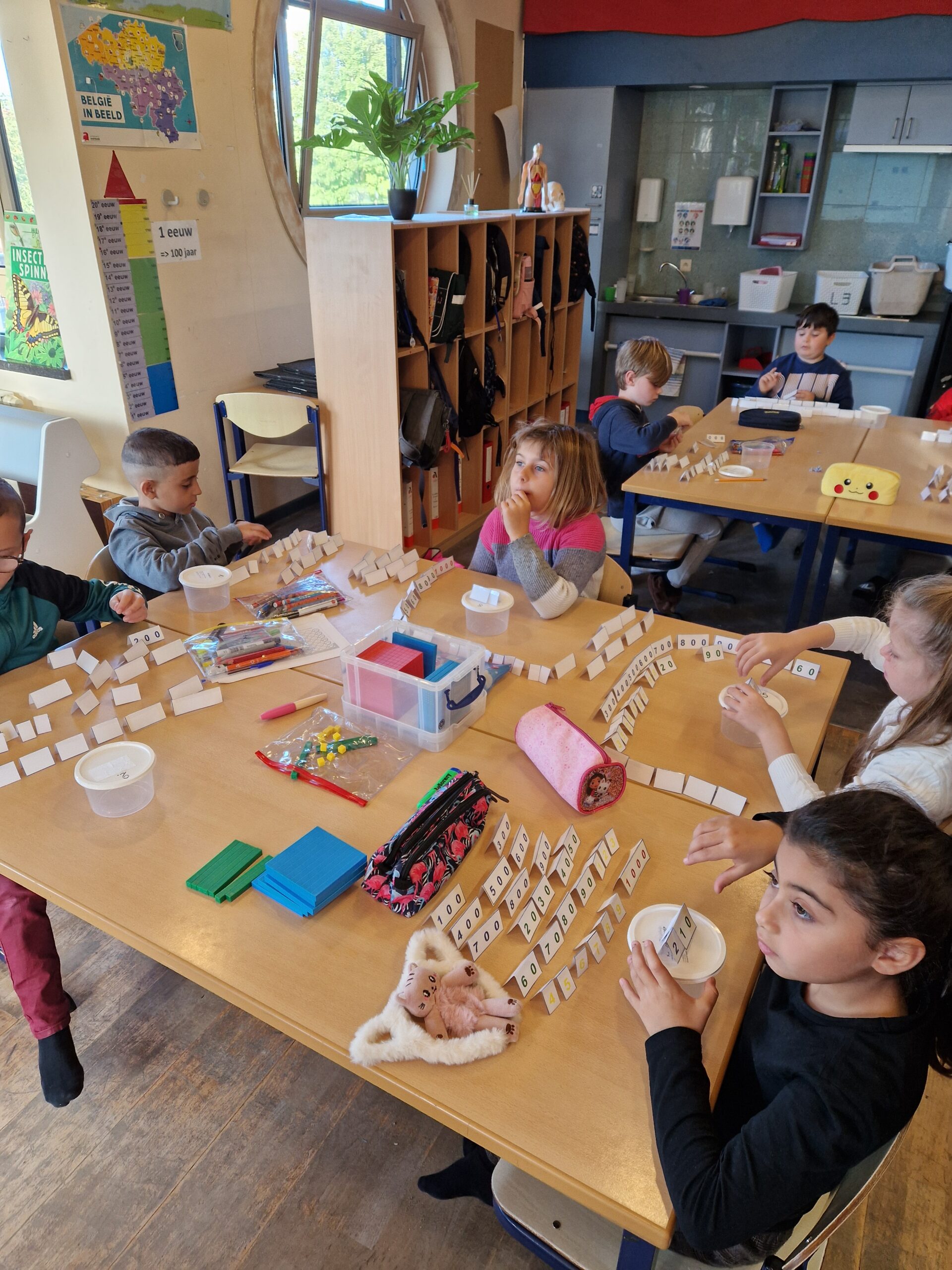 Deze week was het echt spannend in de klas. De eerste nieuwe leerstof van dit schooljaar kwam aan bod: ‘Getallen tot 1000’. De kinderen leerden aan de hand van MAB-blokken, getalkaartjes, springoefeningen, …hoe deze getallen zijn opgebouwd en dat de waarde van een getal veranderd als dit een andere plaats krijgt. De kinderen waren dolenthousiast.