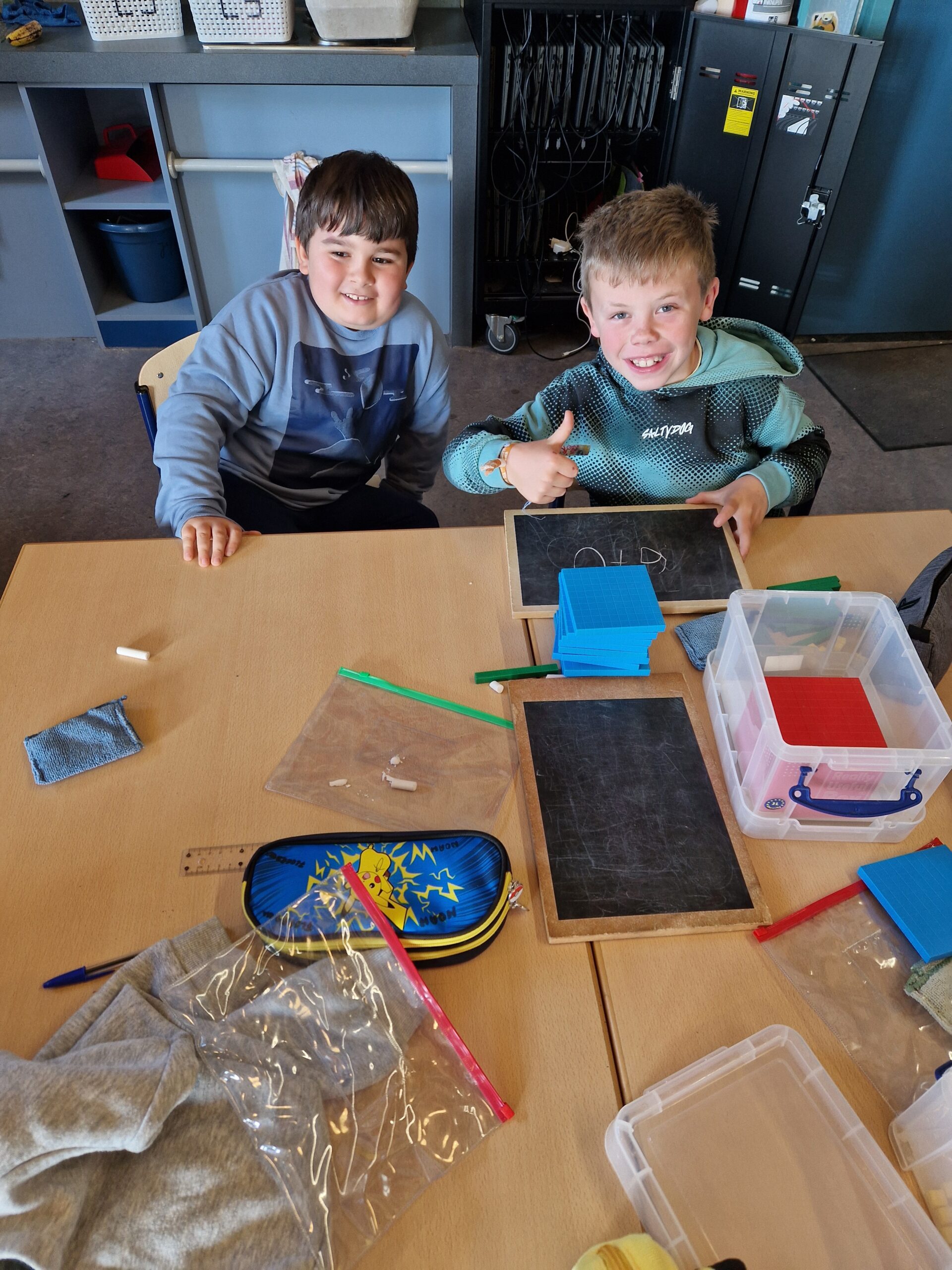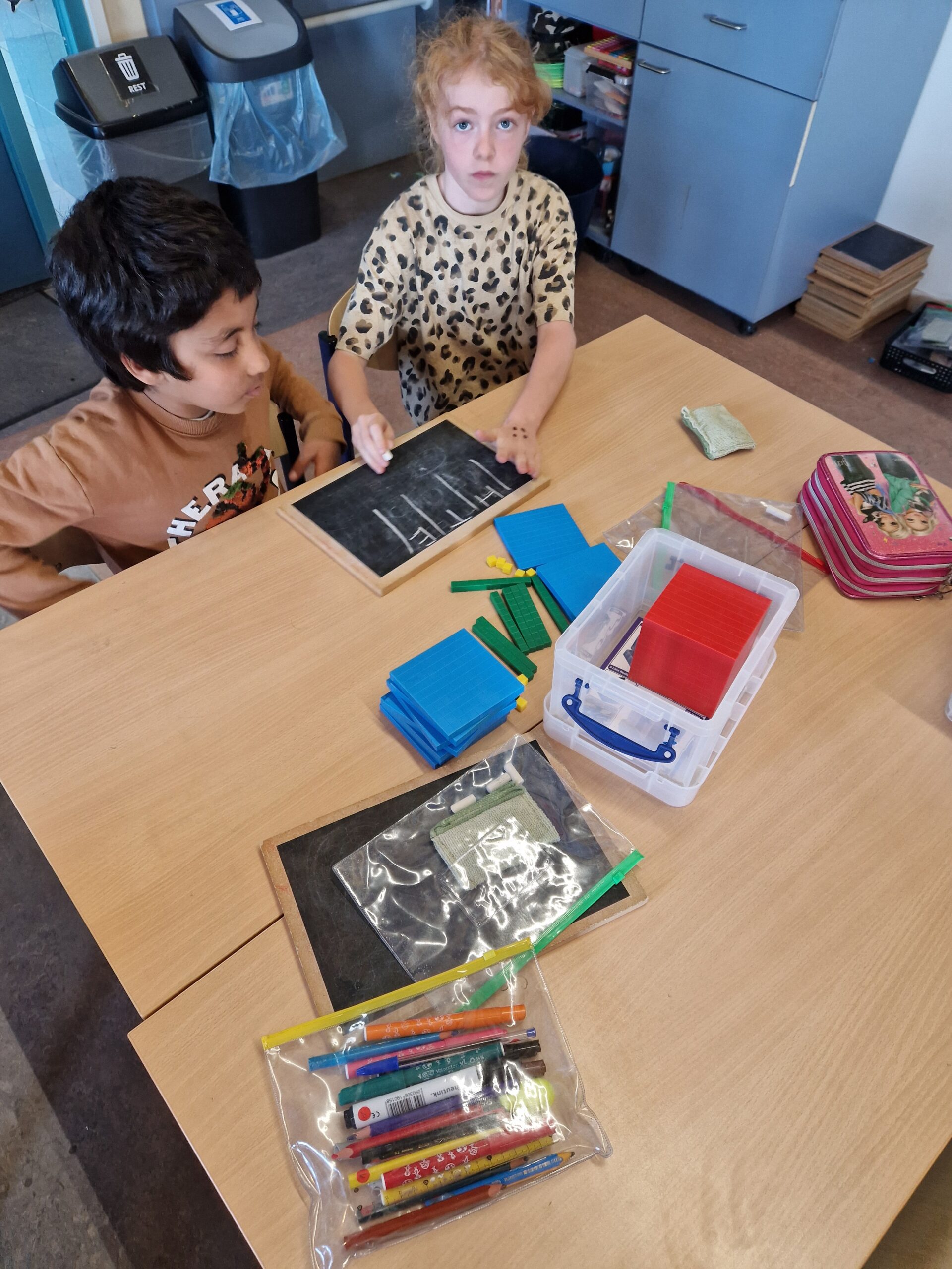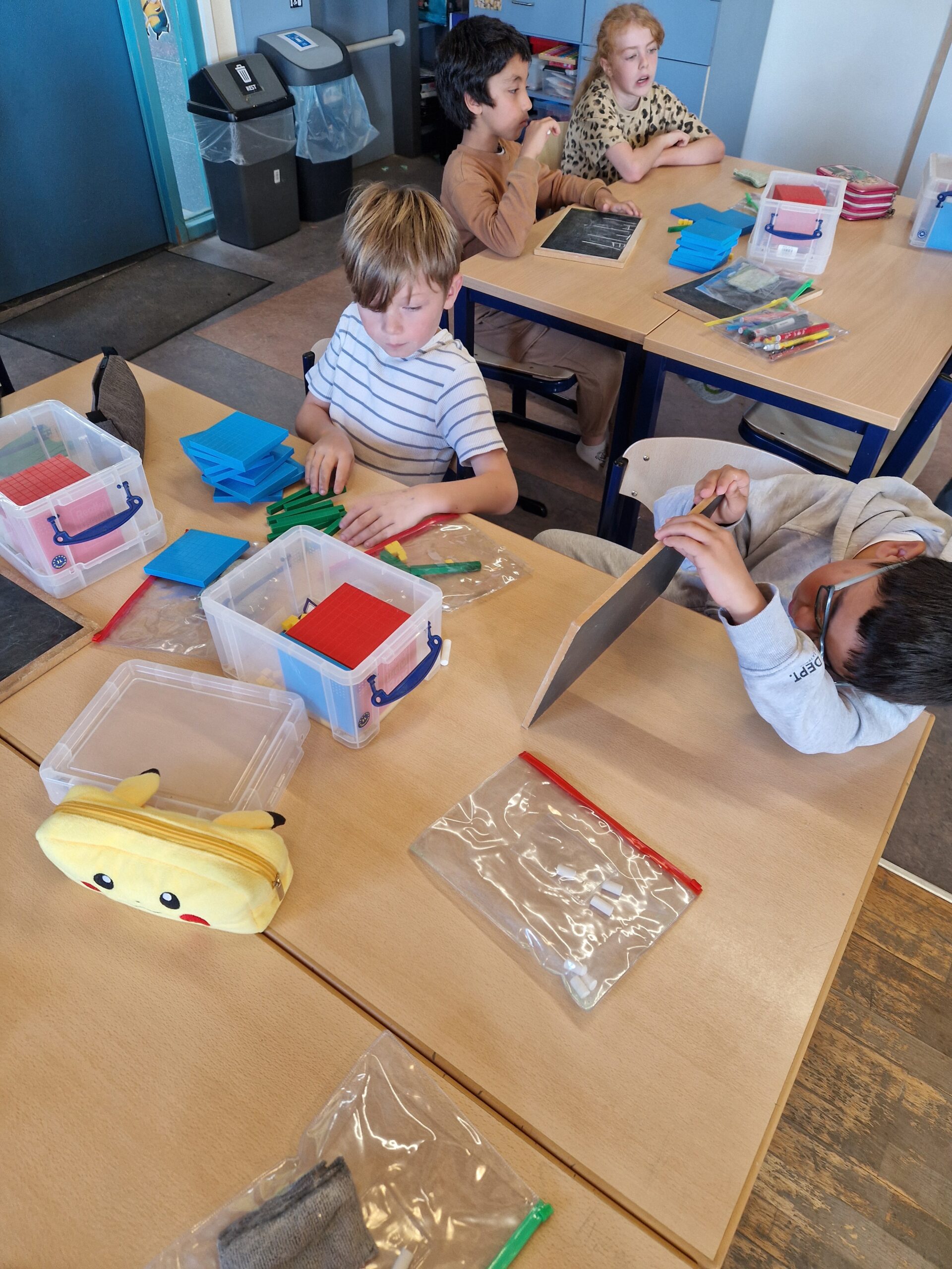 Deze week was het echt spannend in de klas. De eerste nieuwe leerstof van dit schooljaar kwam aan bod: ‘Getallen tot 1000’. De kinderen leerden aan de hand van MAB-blokken, getalkaartjes, springoefeningen, …hoe deze getallen zijn opgebouwd en dat de waarde van een getal veranderd als dit een andere plaats krijgt. De kinderen waren dolenthousiast.