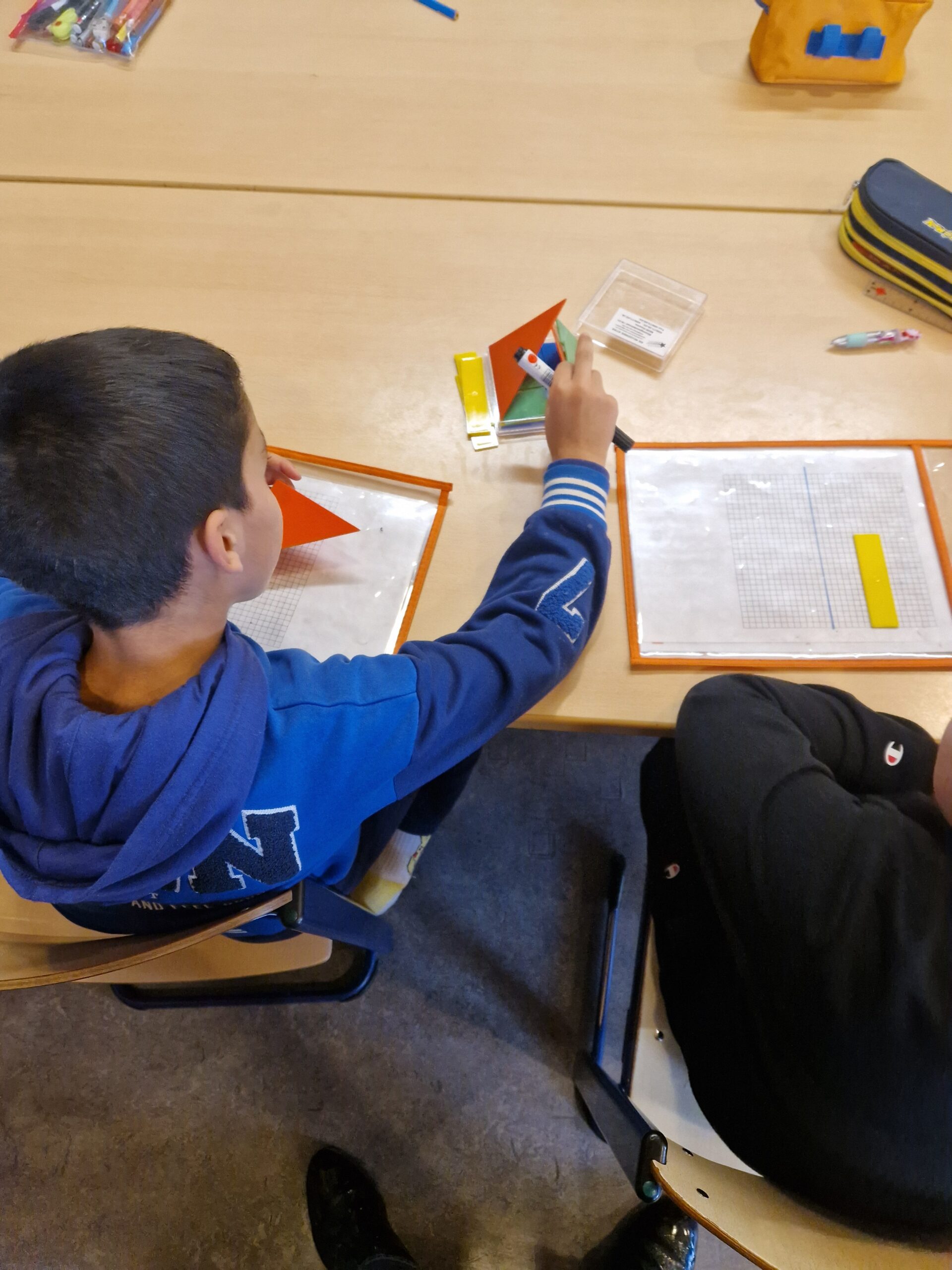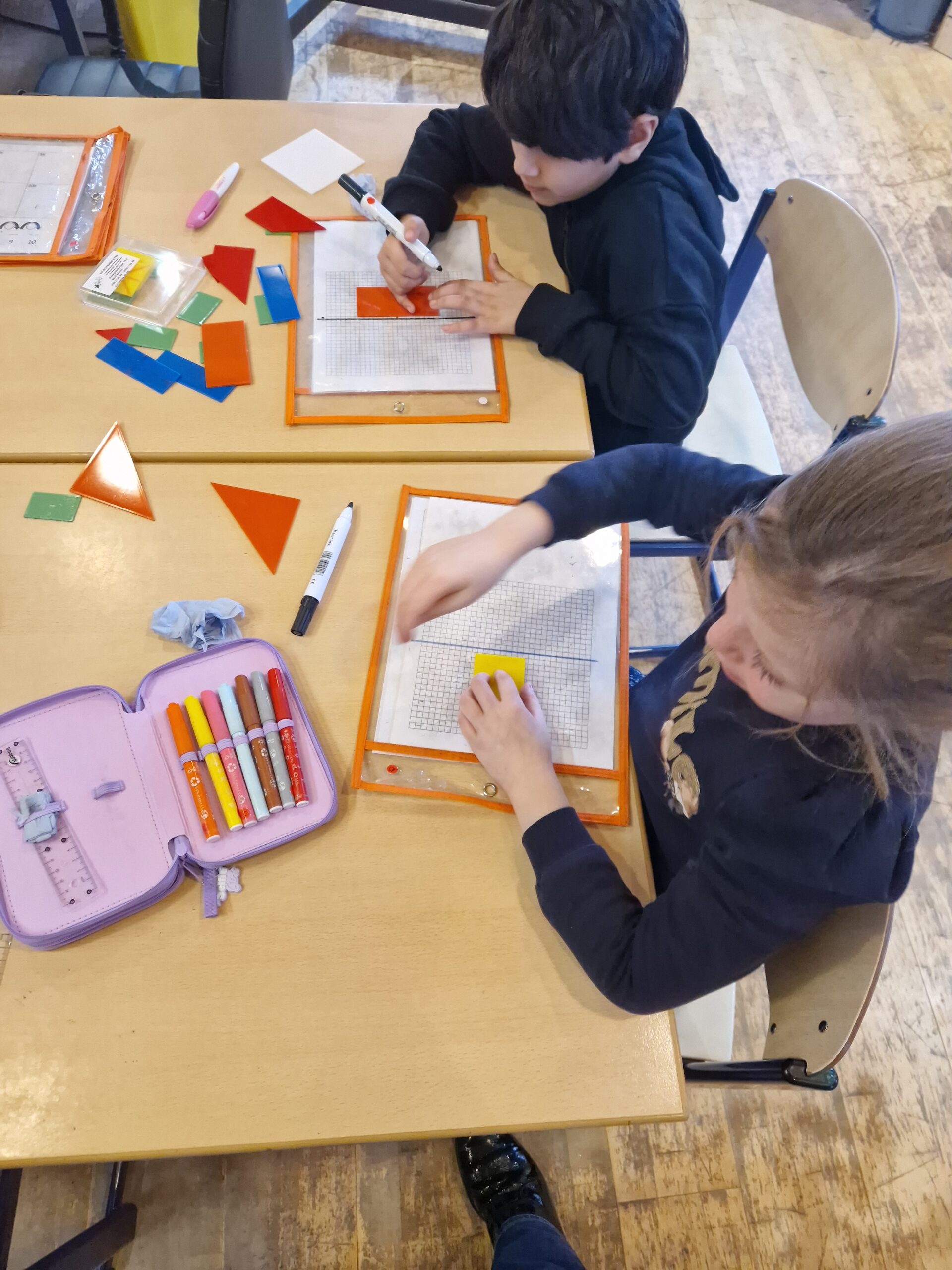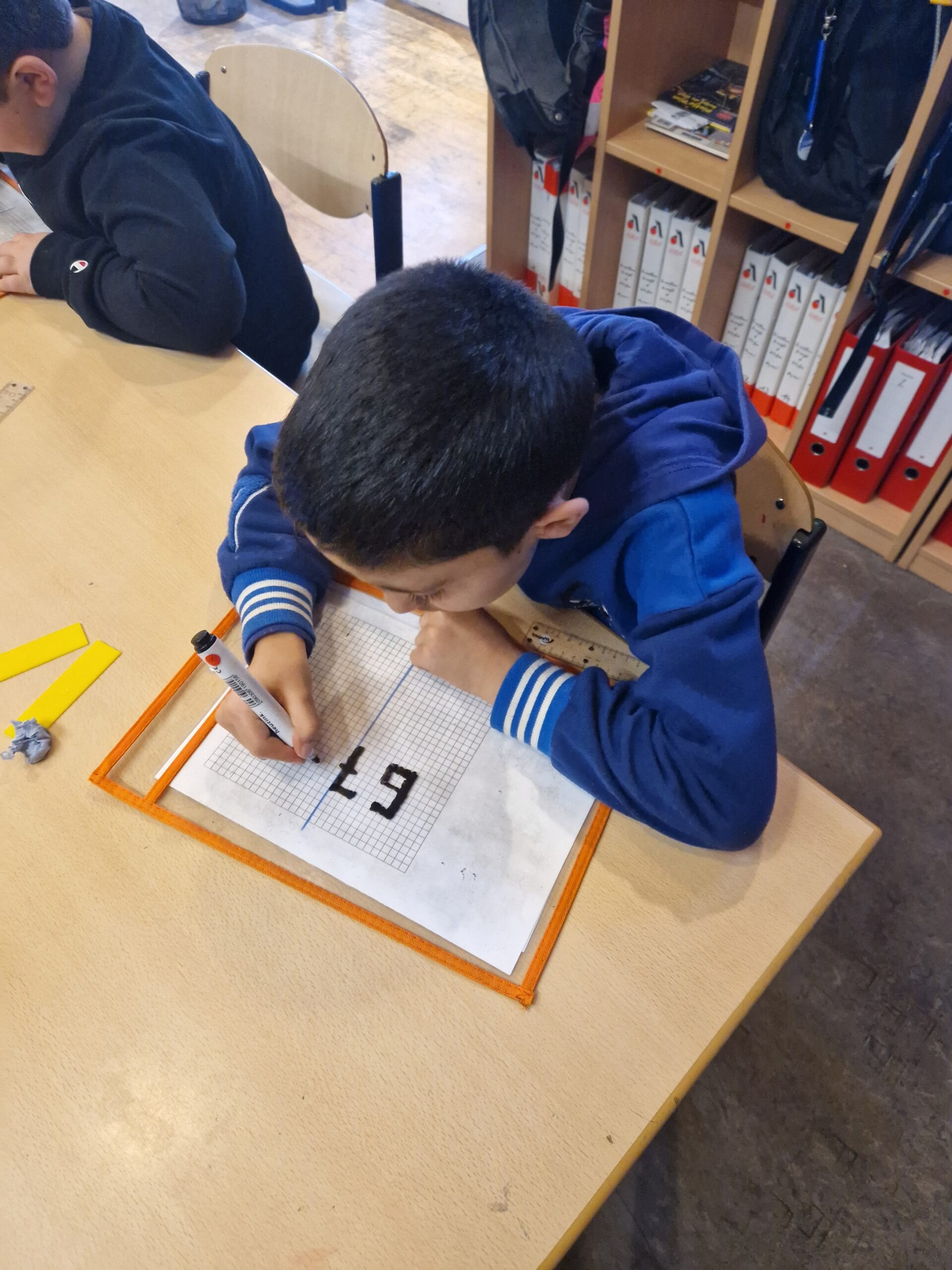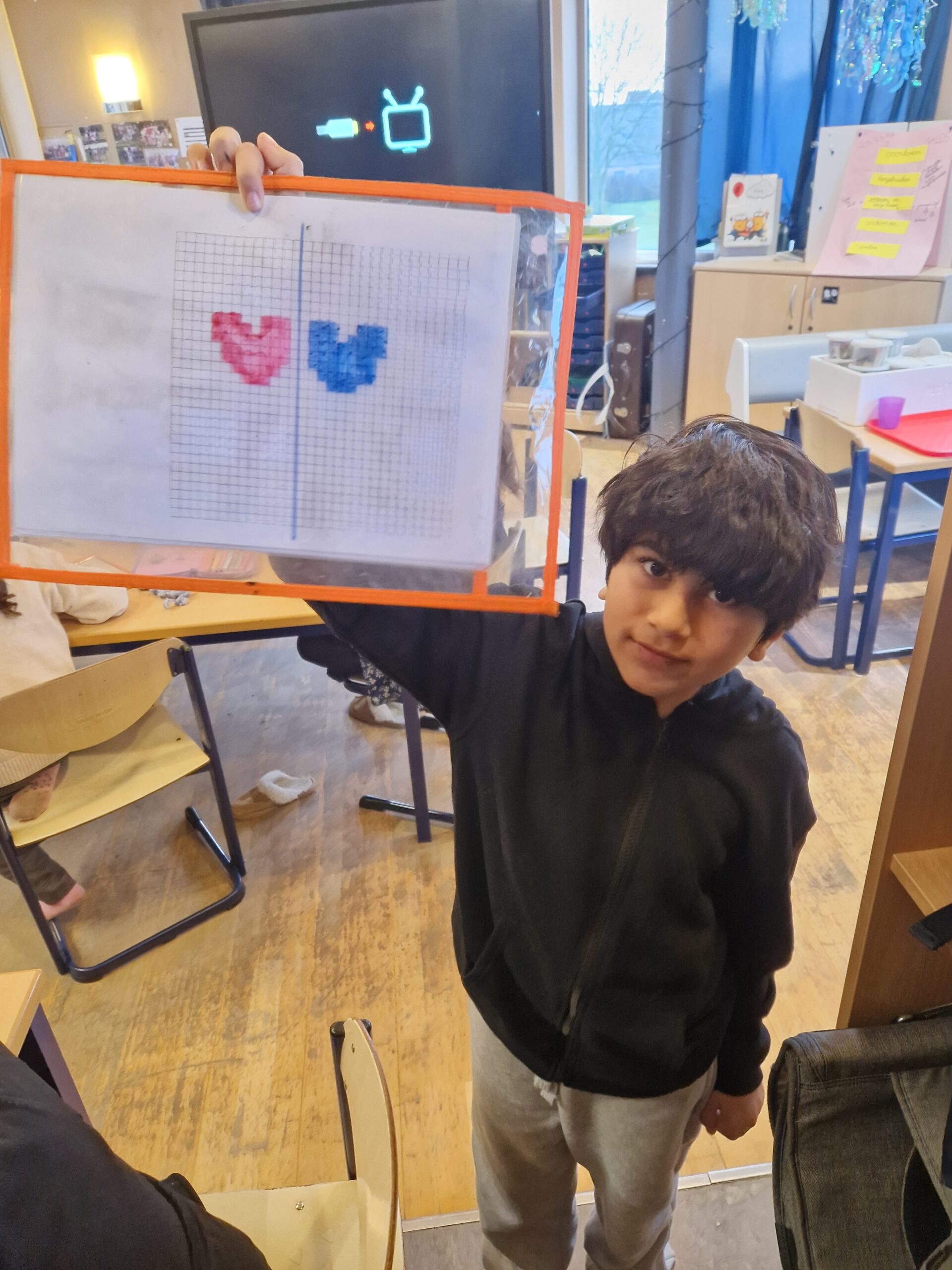 Naast al die sommen herhalen we natuurlijk ook nog andere leerstof van wiskunde. Deze week kwamen de spiegelingen aan bod.