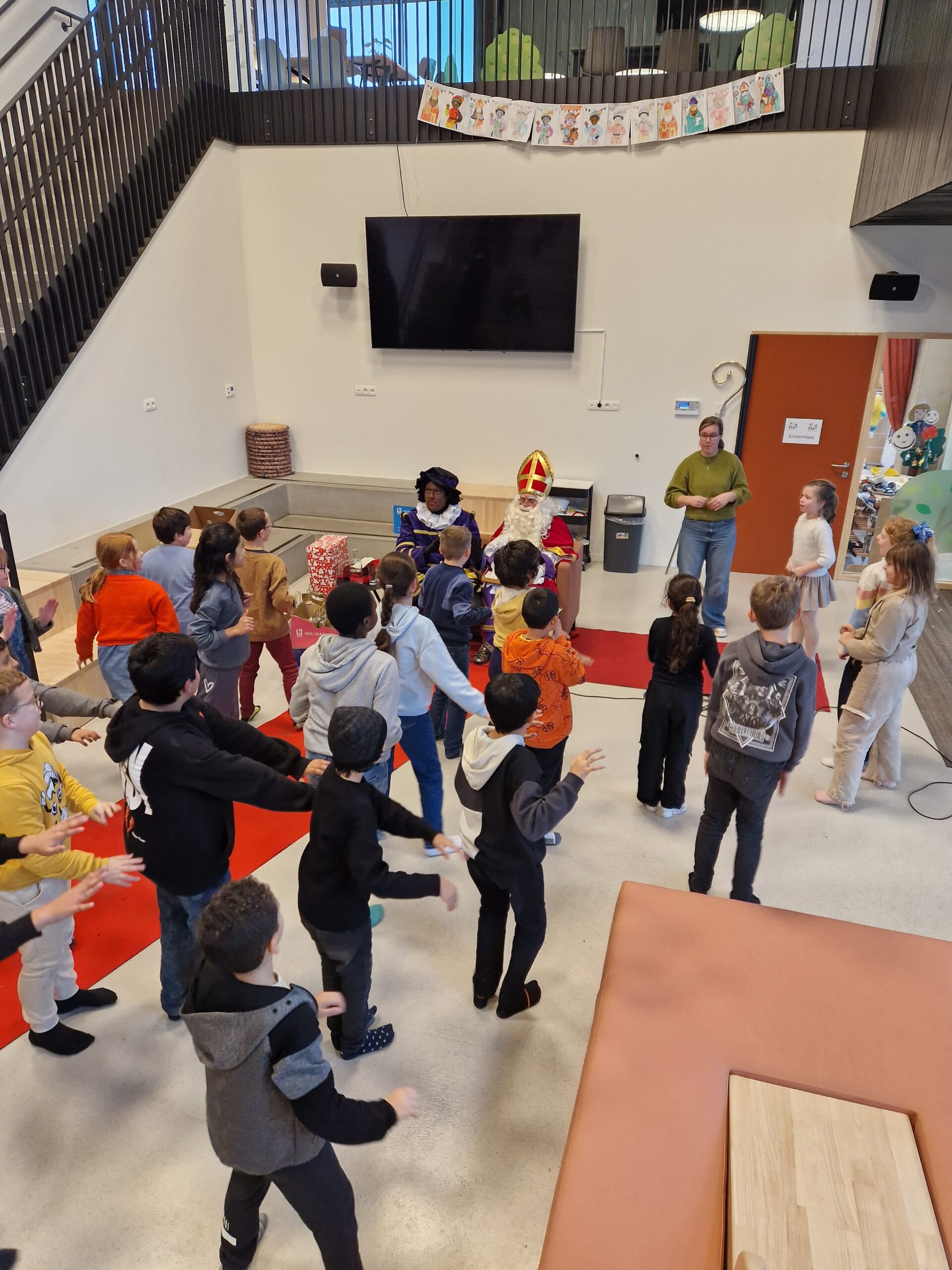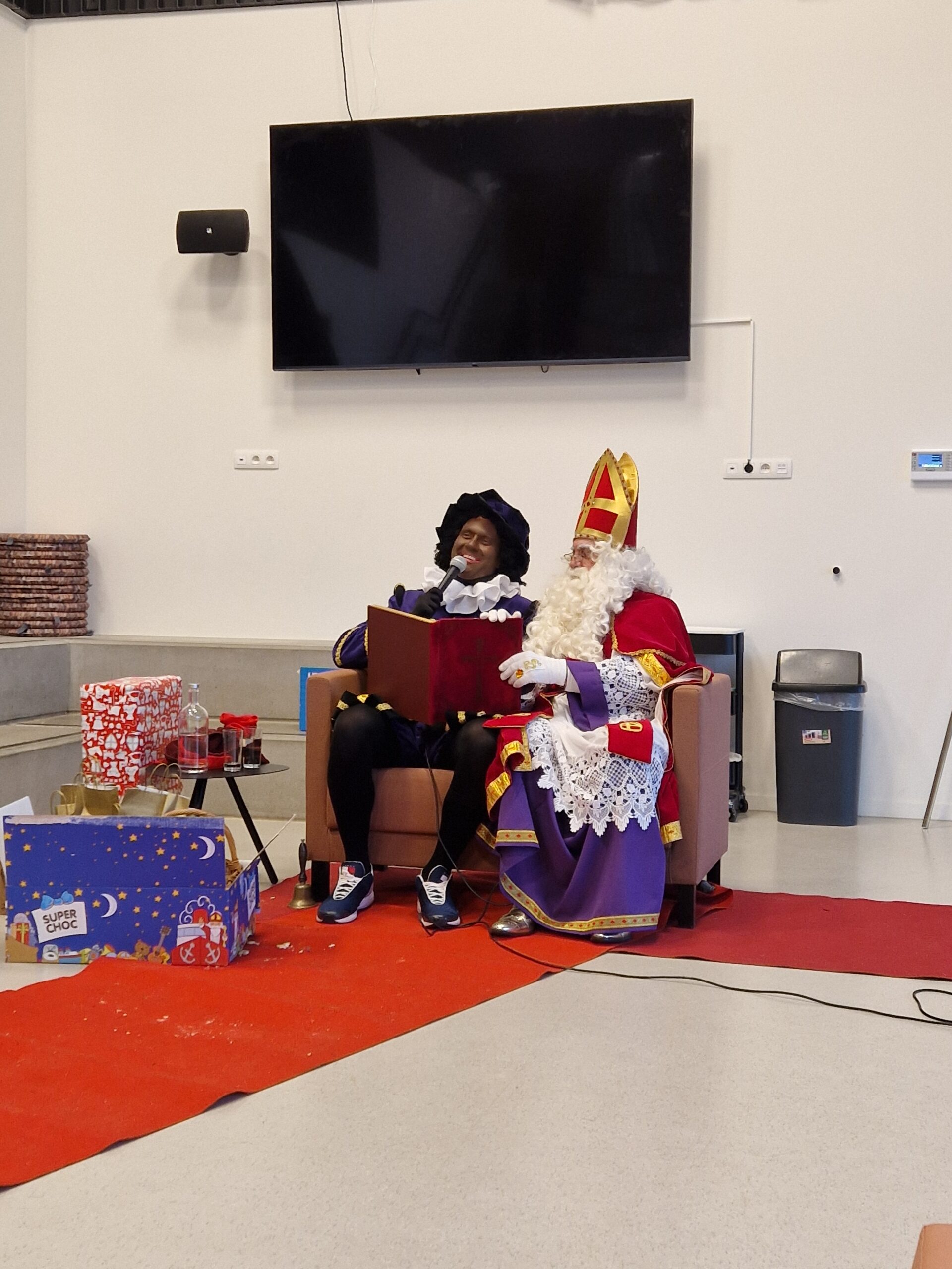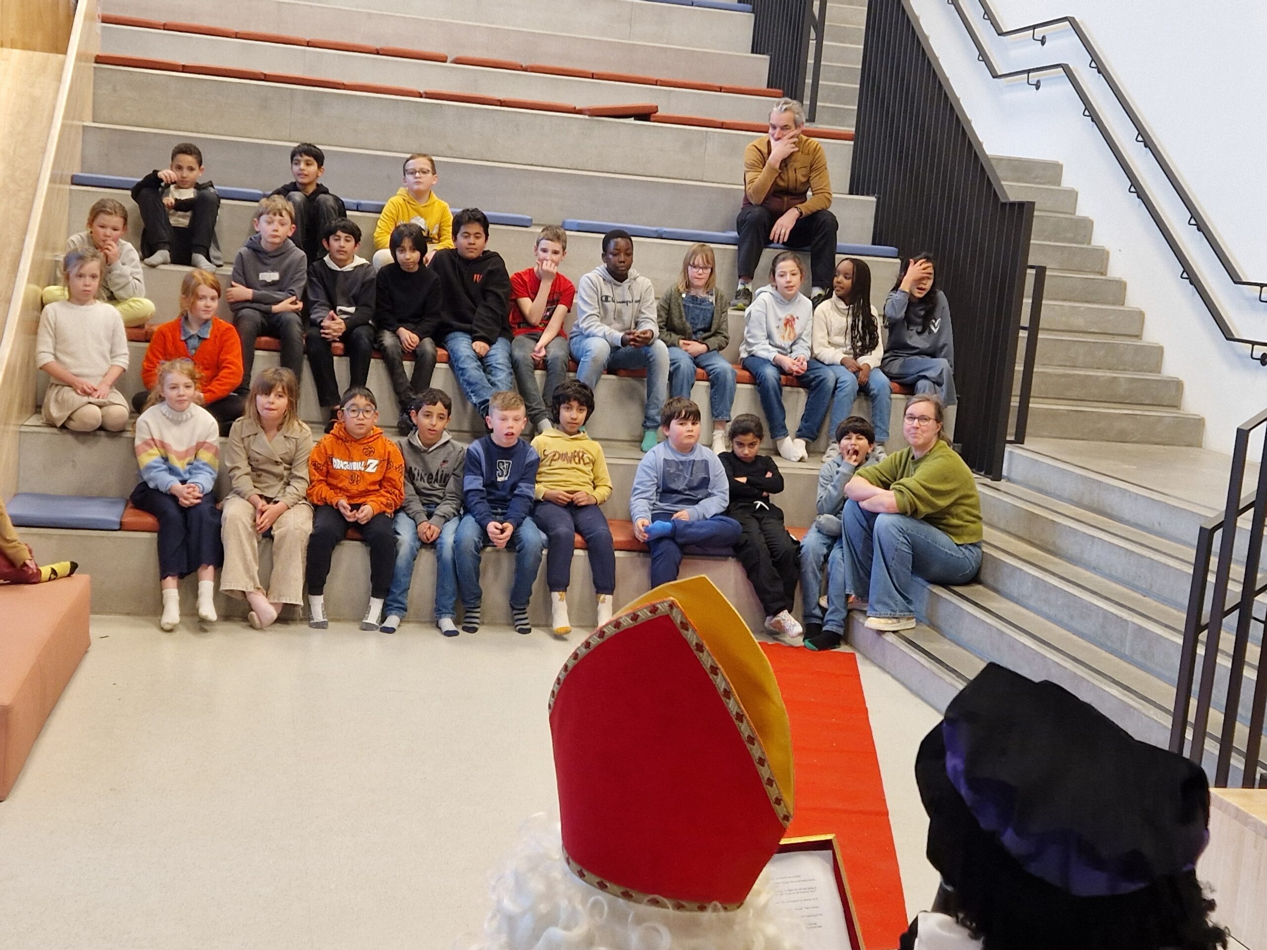 Op donderdag kregen we hoog bezoek op onze school want niemand minder dan de enige, echt Sinterklaas kwam langs! We kregen, samen met het vierde leerjaar een prachtig nieuwe set boomwhackers cadeau en natuurlijk ook wat lekkers!