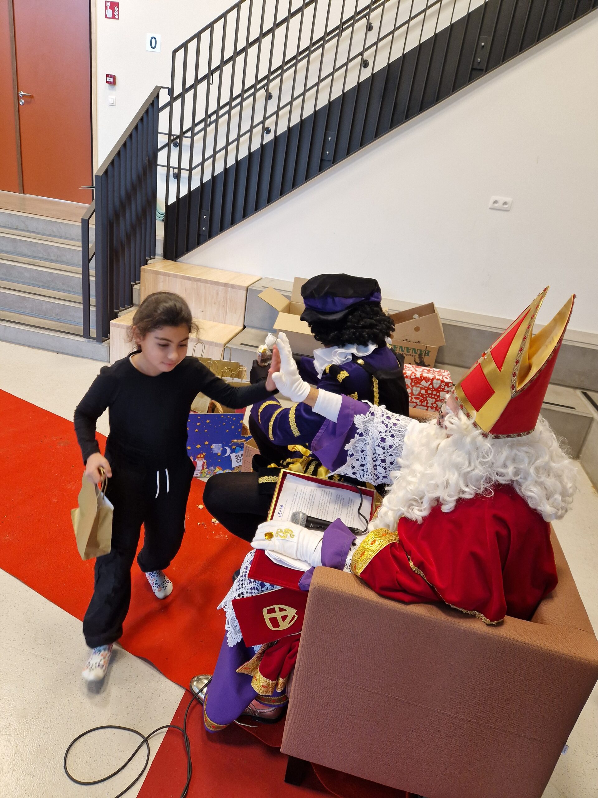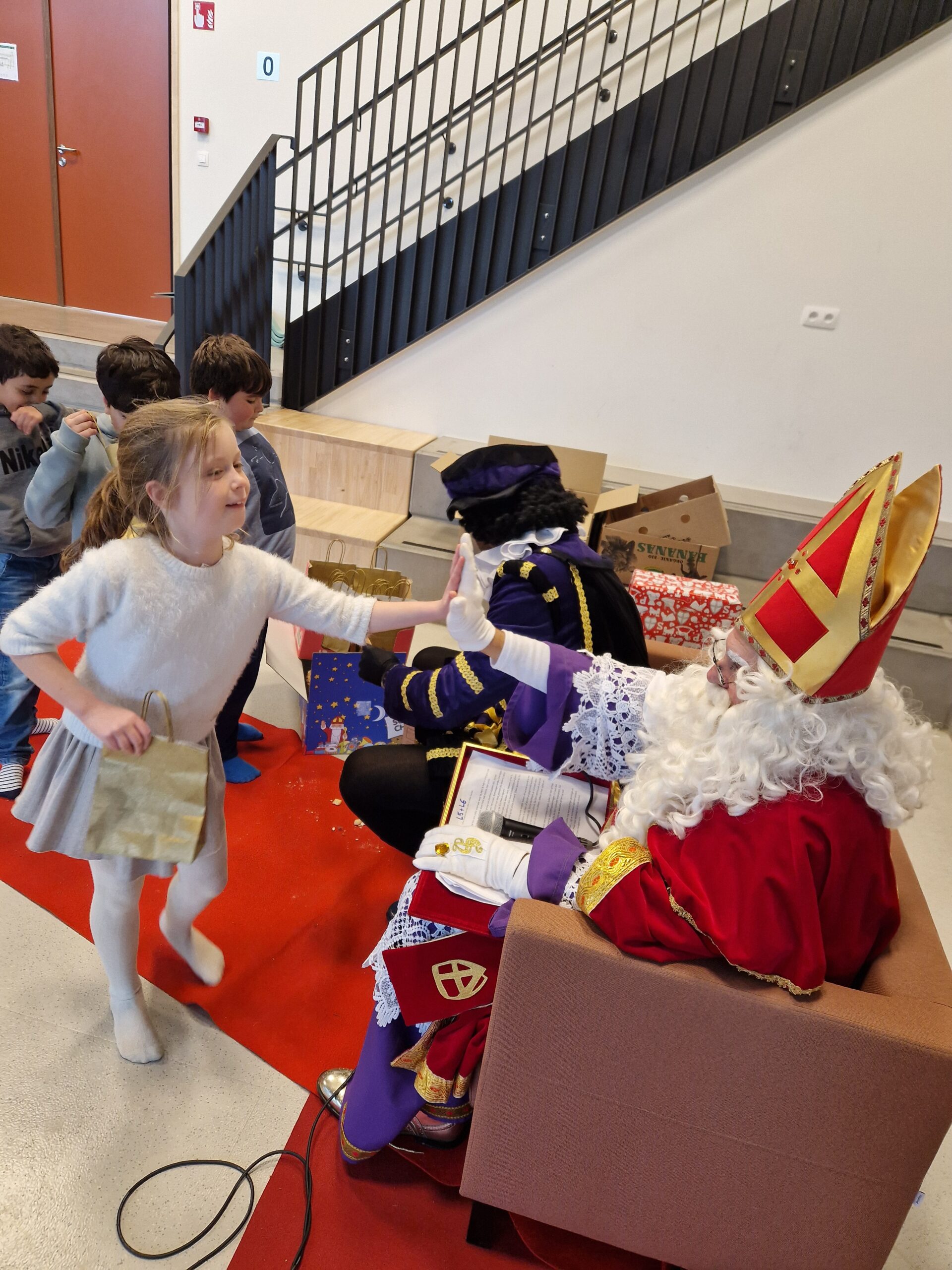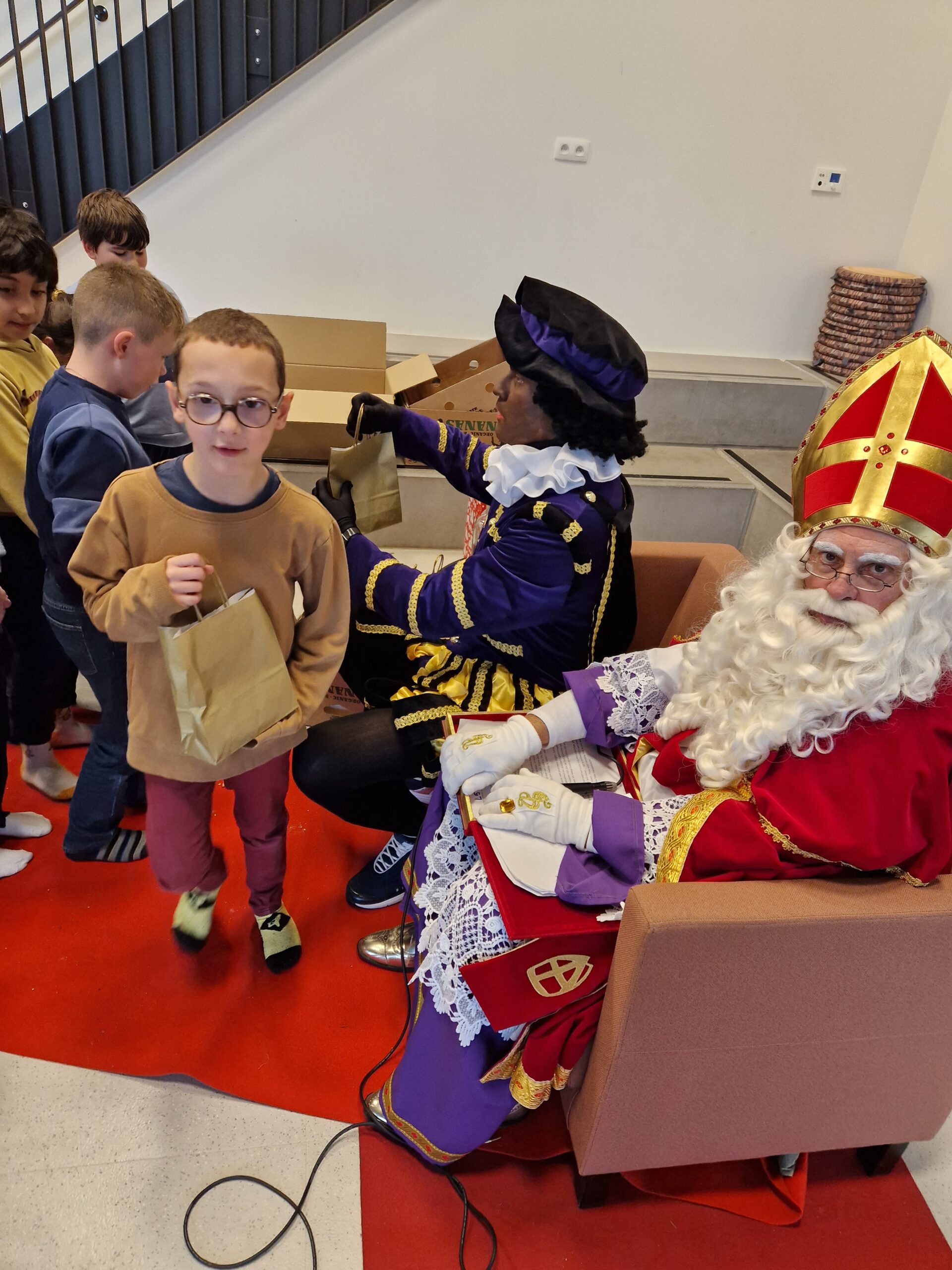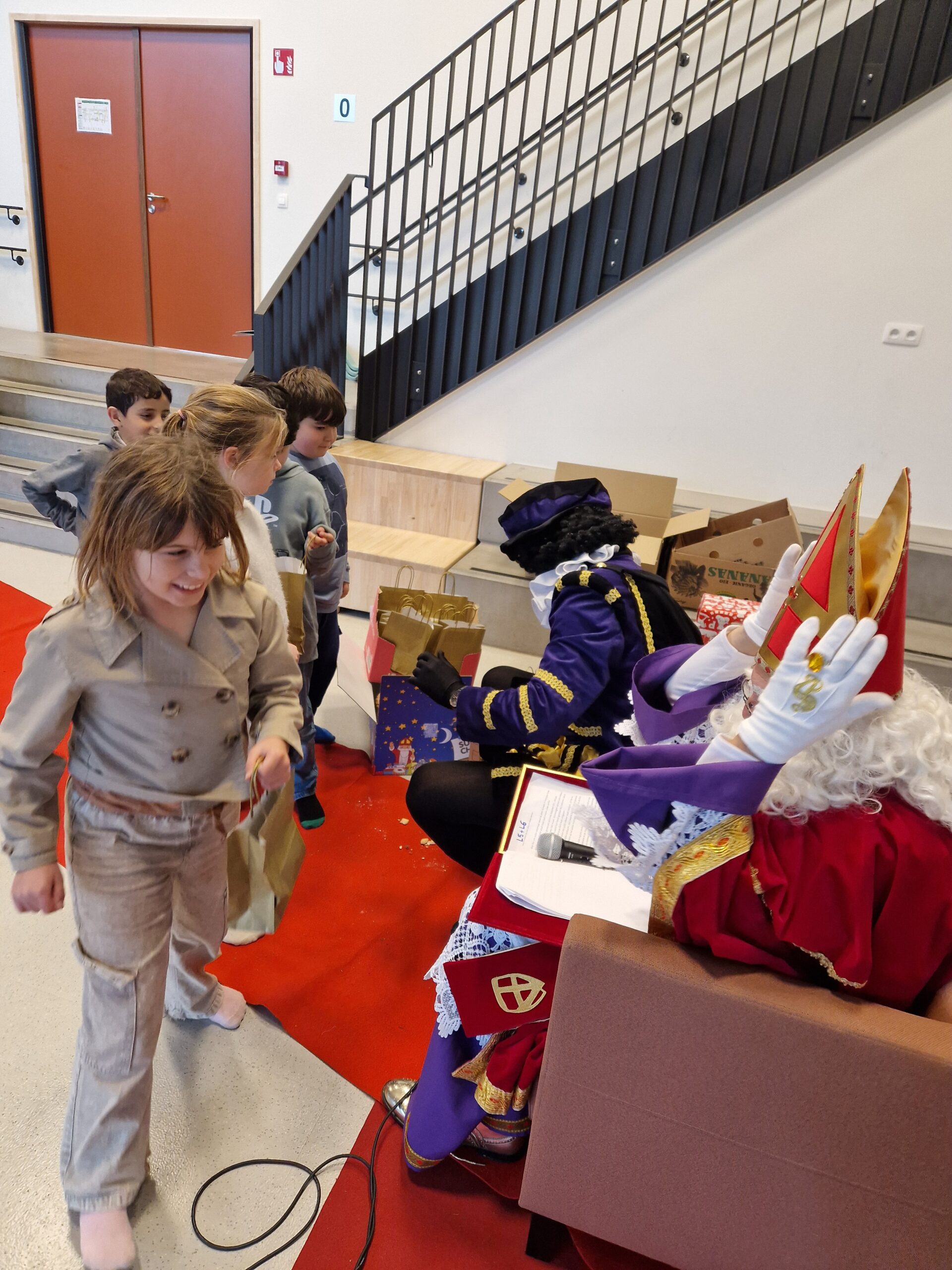 Op het einde van de voorstelling kwam Sinterklaas in hoogst eigen persoon langs om ons even toe te spreken. Voor we vertrokken naar school werden we nog allemaal verwend met een lekker stukje snoepgoed.