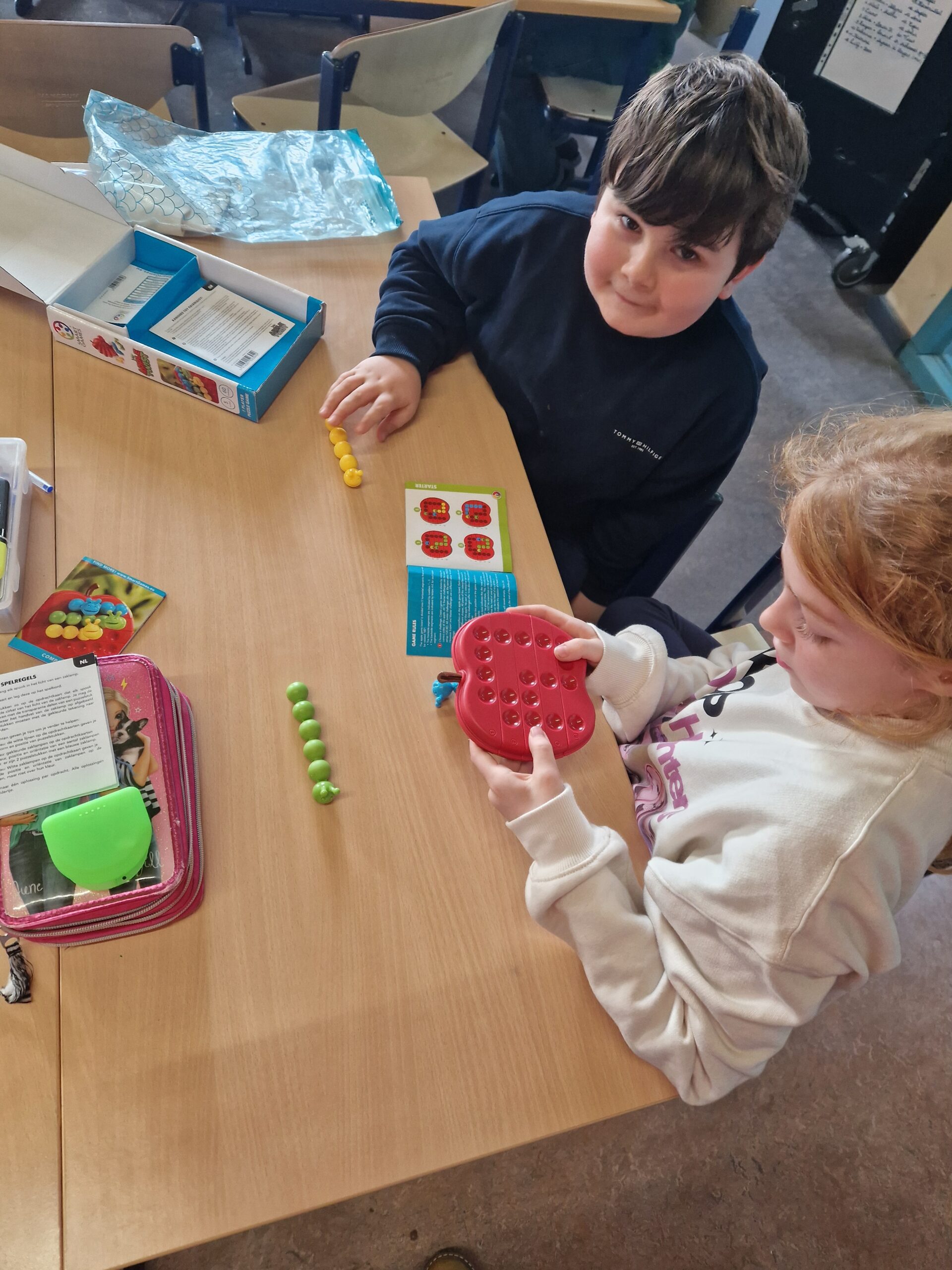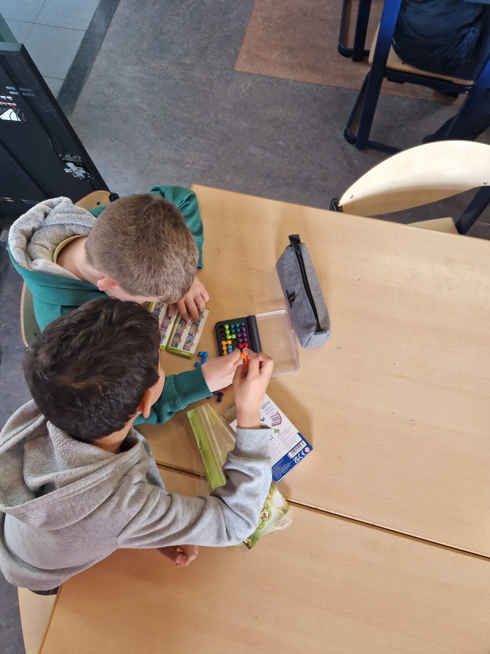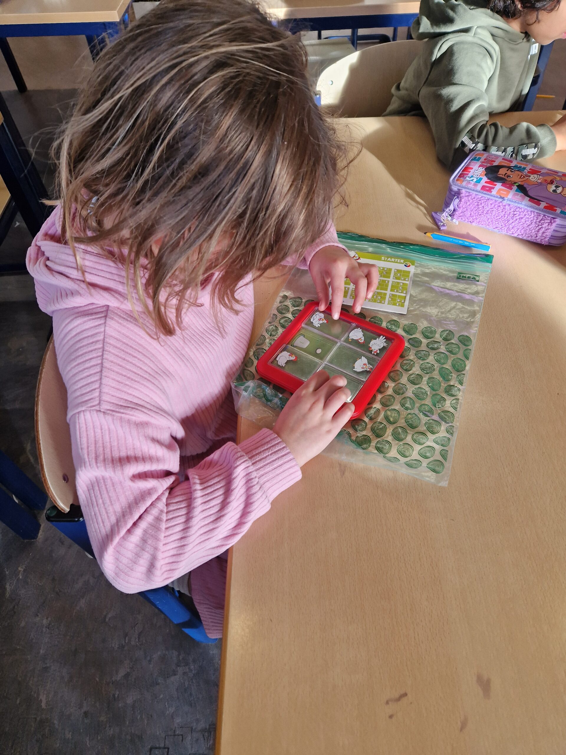 Om ons inzicht wat te trainen, gingen we deze week voor de eerste keer aan de slag met ‘Smartgames’. Hierbij gaan de kinderen individueel aan de slag. De kinderen krijgen een soort puzzel waarbij ze een strategie moeten bedenken om deze correct op te lossen.